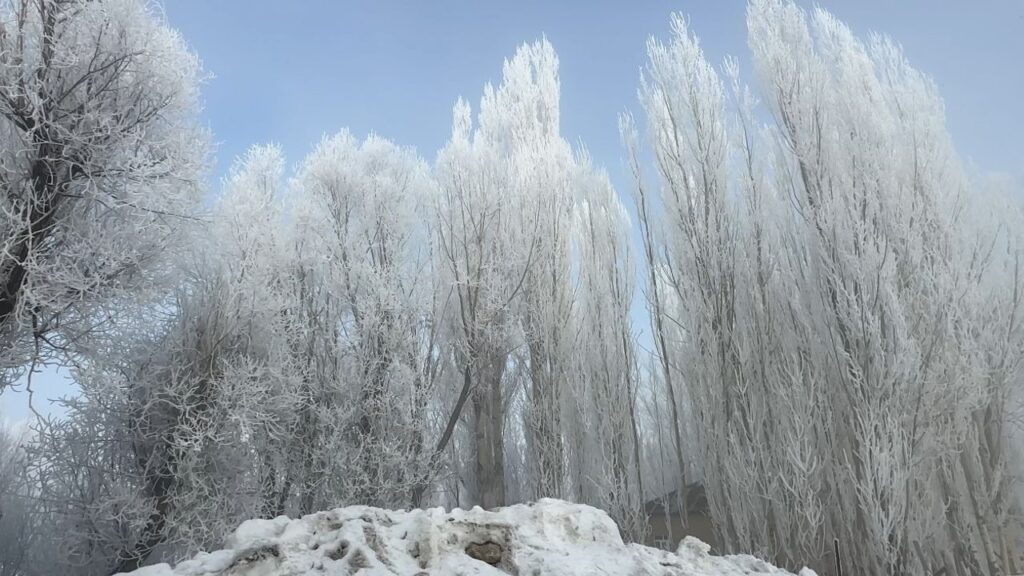 Hakkari genelinde etkili olan soğuk hava dalgası, Yüksekova ilçesinde doğayı beyaza bürüdü. Gece saatlerinde termometrelerin sıfırın altına düşmesiyle birlikte oluşan